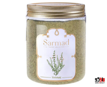 پودر آویشن سرمد : طبيعتى بسيار گرم و خشك دارد. تركيب شيميايى: اسانس روغنى فرّار به نام سرپوله- ترپنالكل- ايزومر آناورسوليك اسيد- اولئانوليك اسيد- پينن- ال پينن- دىالپينن- سيمن- پىسيمن- تيمول- پاراتيمول- ترپن- بورنيلآستات- لينالول- بورنئول- كارواكرول- خواص درمانى: 1- تازه آن را به صورت سبزى با غذا بخوريد. بسيار مفيد است، معده را تقويت مىكند، براى تقويت ديد چشم نافع است. 2- خوردن 10 گرم كوبيده آن مخلوط با عسل و آب گرم براى درمان فلج و لقوه و رفع فراموشى، درمان صرع، تقويت كليه و قوه باه مفيد است. 3- پانزده تا بيست و پنج گرم خشك آن را در يك ليتر آب جوش دم كنيد و هر روز پنج تا شش فنجان آن را به تدريج بنوشيد. عفونتهاى ريوى، سرفههاى پىدرپى، سياهسرفه، آسم يا تنگى نفس، سرماخوردگى و برونشيت و زكام، آنژين، سر دردى كه از اعصاب يا از سوءهاضمه باشد و سردرد نيمه سر شديد يا ميگرن را درمان میكند، لكنت زبان را برطرف میسازد، سوء هضم و سنگينى معده و تخمه و دلدرد و ورم امعاء را برطرف میسازد، بادشكن است، بيمارىهاى پوستى، درد اعصاب، تشنجات عصبى يا پرش موضعى و اختلالات كبدى، اسهال و ترشحات چركى ادرار و حيض را درمان میكند، براى درمان سكسكه، قطره قطره ادرار كردن، خورد كردن سنگ مثانه و تسكين درد رحم مفيد است، قابض و مقوى است، قلب را تقويت مىكند و فرحافزا است و هوش و قوه ادراك را زياد مىكند، مدر بول و حيض و عرق و شير میباشد، بازكننده گرفتگىهاى روده ها است. 5- ضد قارچ و انگل بوده و براى درمان كچلى مفيد است. براى رفع تبخال، رفع دلهره و تسكين درد سياتيك مفيد است. 6- آن را در دهان بجويد. بوى بد دهان را مرتفع مىسازد. 7- بيماران مبتلا به رماتيسم مىتوانند 500 گرم از آن را در كيسهاى بريزند و در مقدارى آب انداخته و پانزده دقيقه بجوشانند، بعد آب آن را در يك وان پر از آب با درجه حرارت 35 تا 40 قرار داده و 20 دقيقه در آن وان استراحت كنند. بعد بلافاصله خود را خشك كرده و لباسهاى گرم بپوشند و از حمام خارج شده و در رختخواب بخوابند و روى خود را هم گرم بپوشانند تا خوب عرق كنند، اين عمل براى آنان شفابخش است. 9- آن را بجوشانيد و با آبش موضع درد را كمپرس كنيد. رگ به رگ شدگى عضو و پيچيدگى عضلات را درمان مىكند.این محصول توسط برند سرمد در شهر کاشان تولید شده و در فروشگاه اینترنتی هافکو به فروش می رسد.